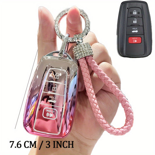 Car Keychain Cover for Toyota, with Rhinestone Keychain, Soft Key Full Protection Cover, Gift