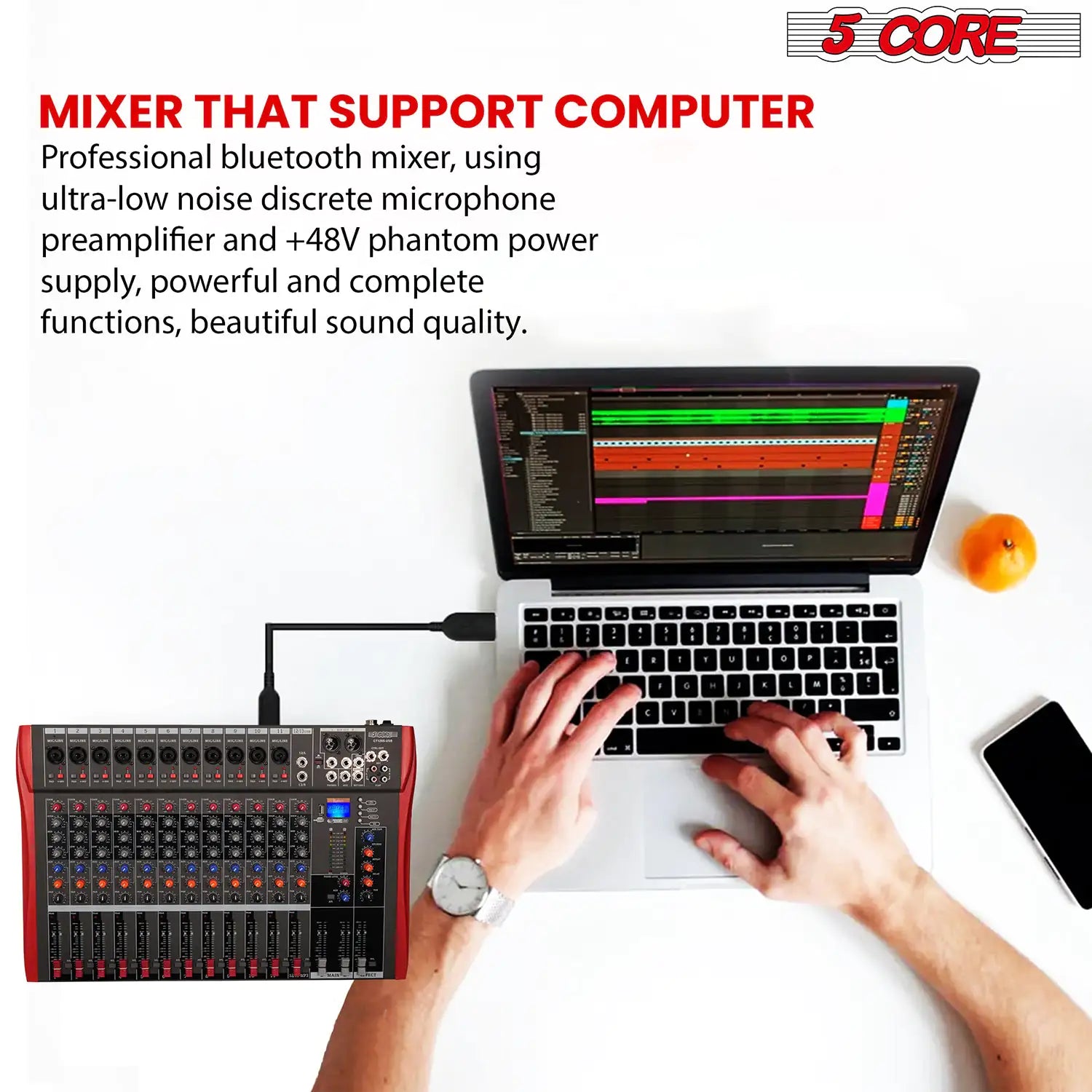 5 Core Audio Mixer 12 Channel DJ Equipment with Bluetooth USB Sound Board Console