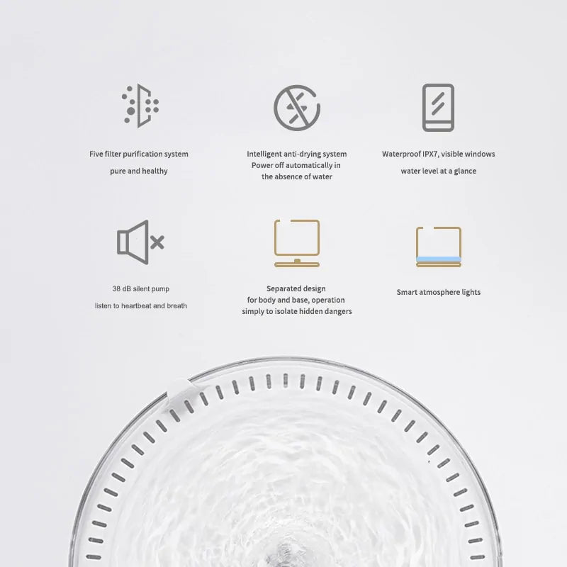 But that's not all – we've taken pet hydration to the next level by incorporating a fun atmosphere light belt. Watch as your pet enjoys a truly delightful drinking experience, complete with mood-enhancing lighting that adds an extra element of joy to their day.