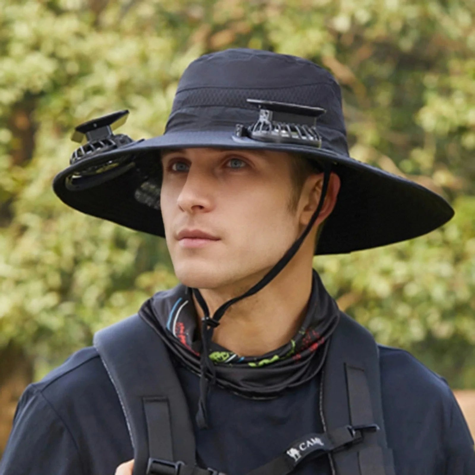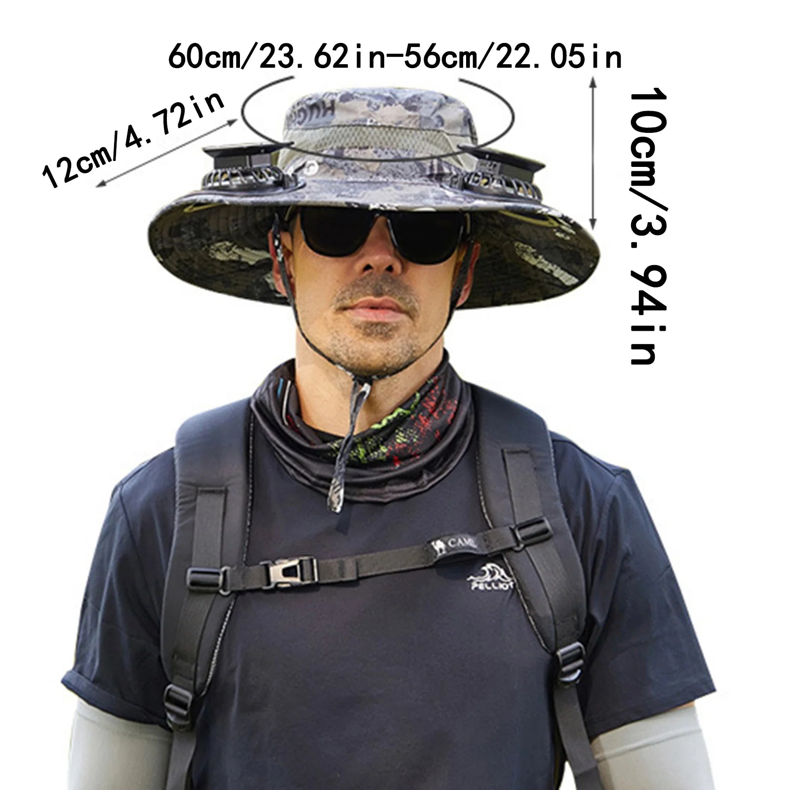 Wide Brim Solar Fan Outdoor Fishing Hat】This upgraded Wide Brim Solar Fan Outdoor Fishing Hat is designed to be worn on the head, leaving your hands . Built in a mini fan at the front of the brim, the face.