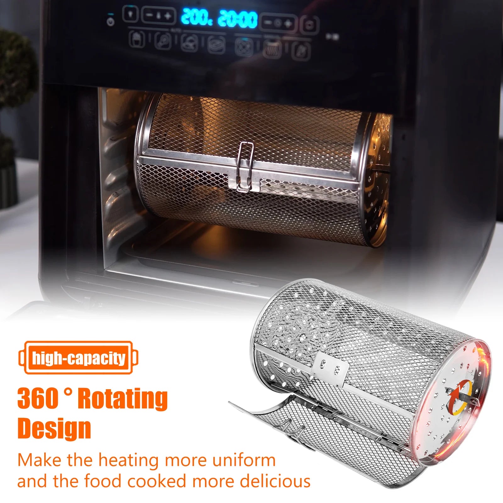 Rotisserie Basket 360° Rotated Stainless Steel Rotisserie Grill Roaster Non-Stick Washable Heat Resistant Oven Round Rack Basket