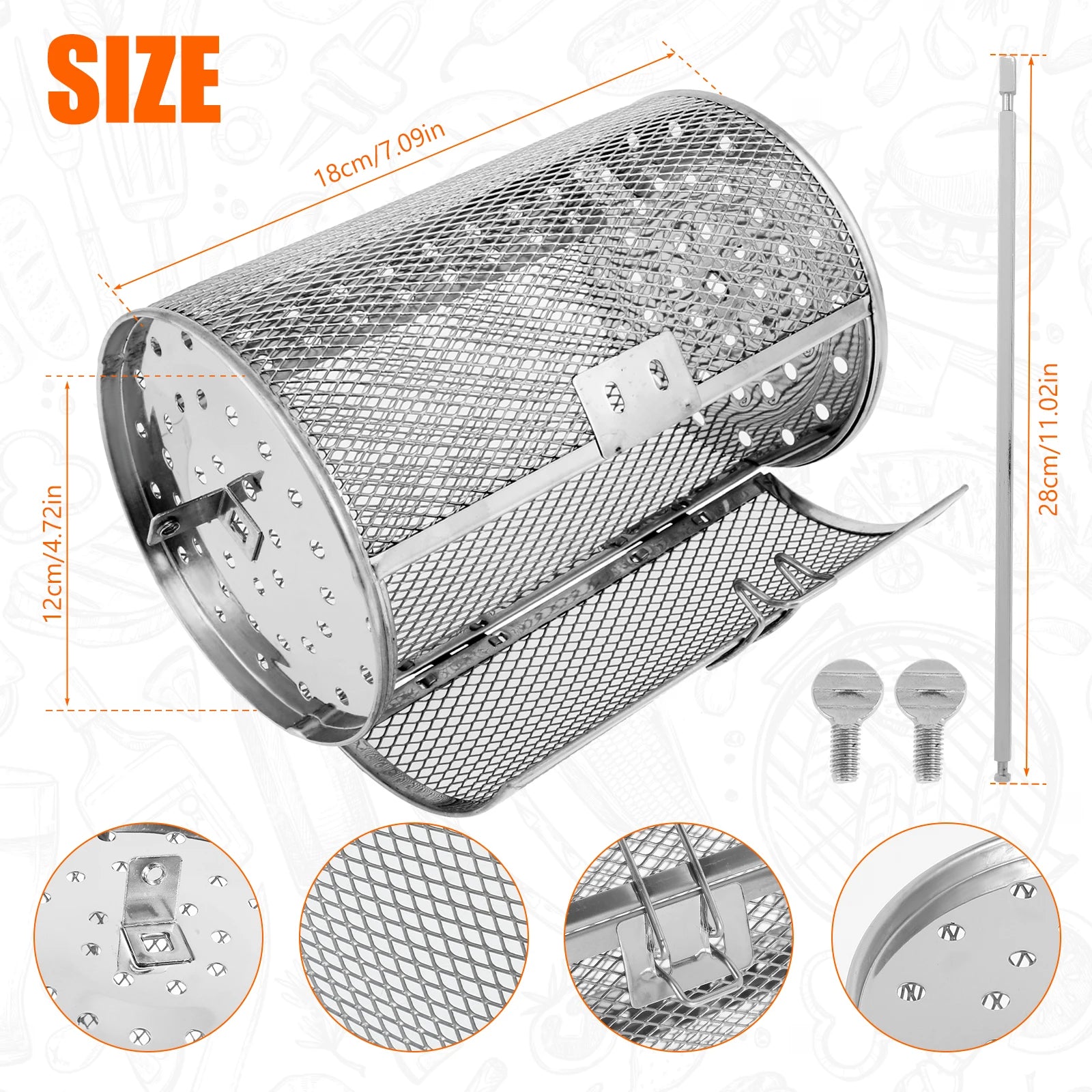 Rotating Design: Stainless steel rolling grill basket is equipped with fixing screws at both ends and rotating shaft. The shaft enhances the stability of the rotation, 360 degree rotating design, so that the heating is more even for delicious food cooking.