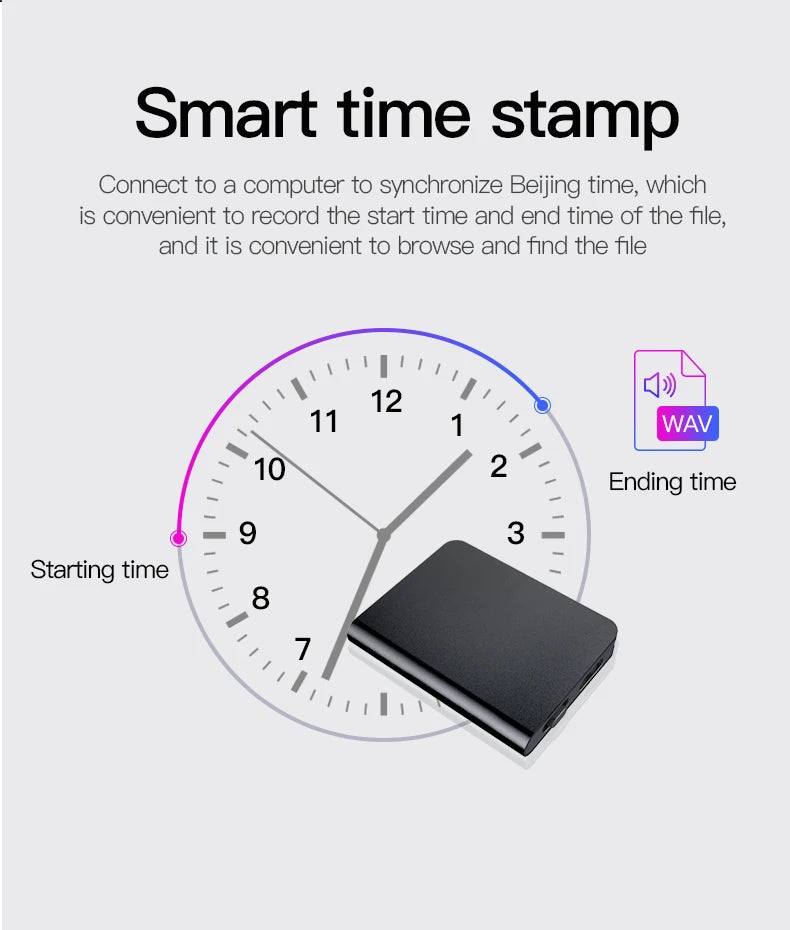 Working Time: About 7hours on one Charge Can store up to 96 hours of audio